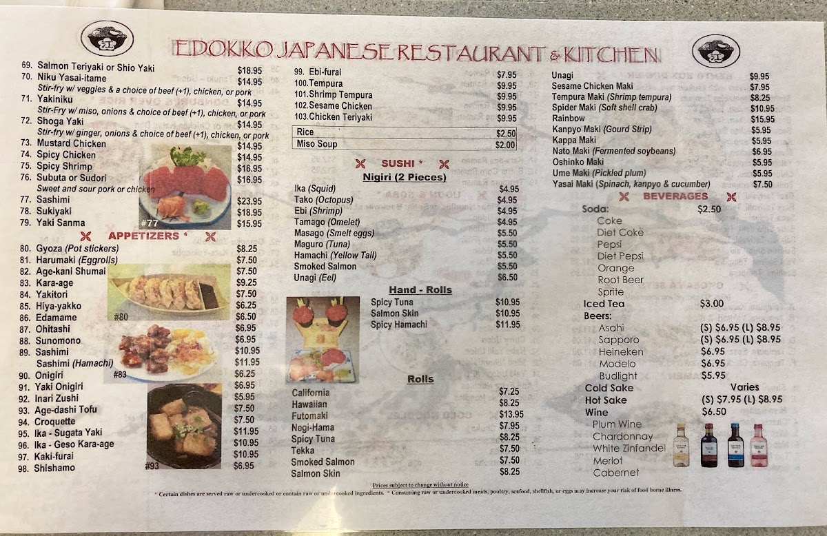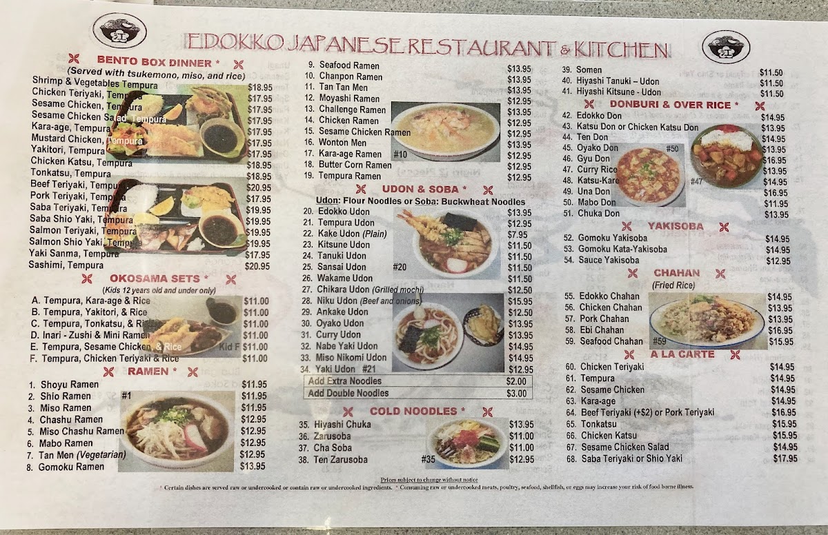 Edokko offers a welcoming and straightforward menu that feels like a comforting embrace of traditional Japanese flavors. The selection balances casual bites and heartier dishes, making it a great spot for anything from a relaxed lunch to a cozy dinner. Whether you’re in the mood for a steaming bowl of Mabo Ramen or a carefully prepared Bento box, the menu provides satisfying options that fit well with the restaurant’s warm, neighborhood atmosphere.